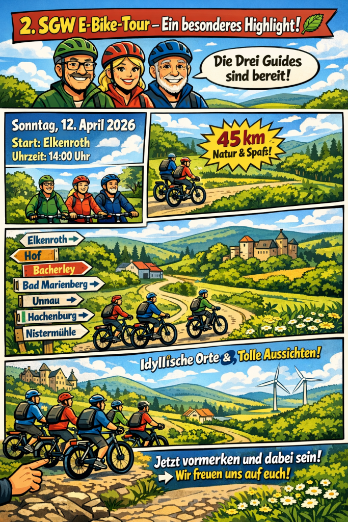đŽââïž 2. SGW E-Bike-Tour â Ein besonderes Highlight! đżAm Sonntag, 12. April 2026 ist es wieder soweit: Die zweite SGW E-Bike-Tour steht an und diesmal